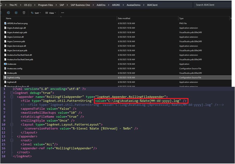 The Avatax WebUI logs: C:/logs/AvataxWebAPI_