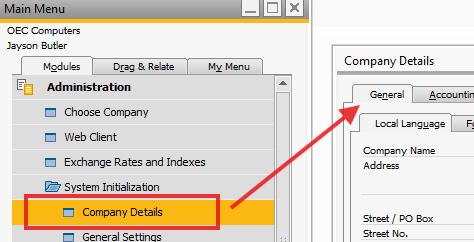 For Service Type documents, the Origin address is taken from the Company address defined in SAP, under the General tab within Company Details. See below